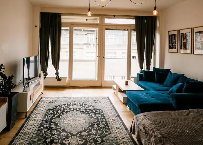 Com cozinha equipada como parte das suas comodidades de auto-atendimento, o Bright 120M Apartment 2Br Balconies Near Castle também providencia aos hóspedes zona de refeições para desfrutarem das suas refeições. O Bright 120M Apartment 2Br Balconies Near Castle está localizado a cerca de 25 minutos de carro do aeroporto de Praga Vaclav Havel.